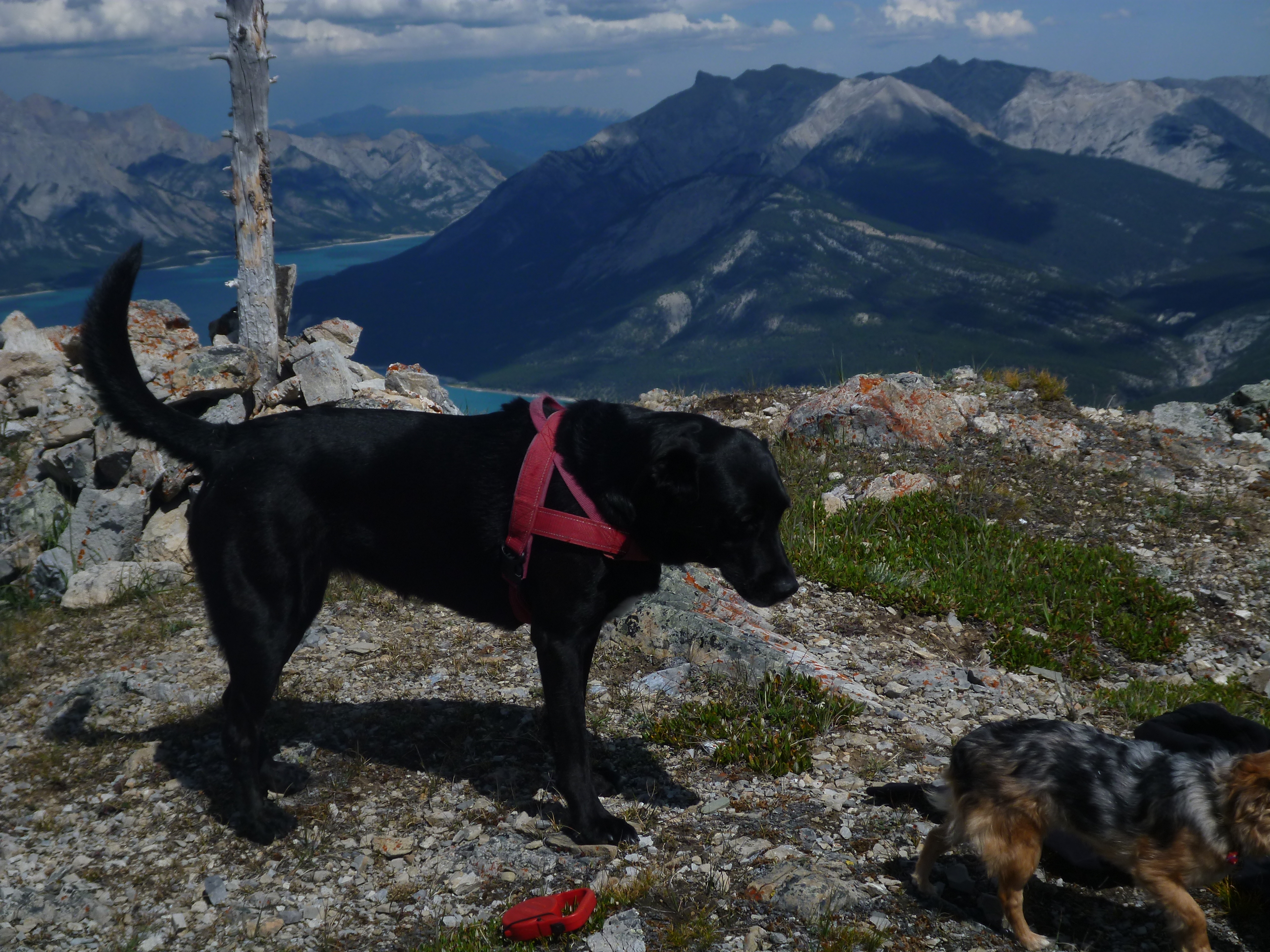 Layla on Mount Ernest Ross in David Thompson area with Abraham Lake in background.