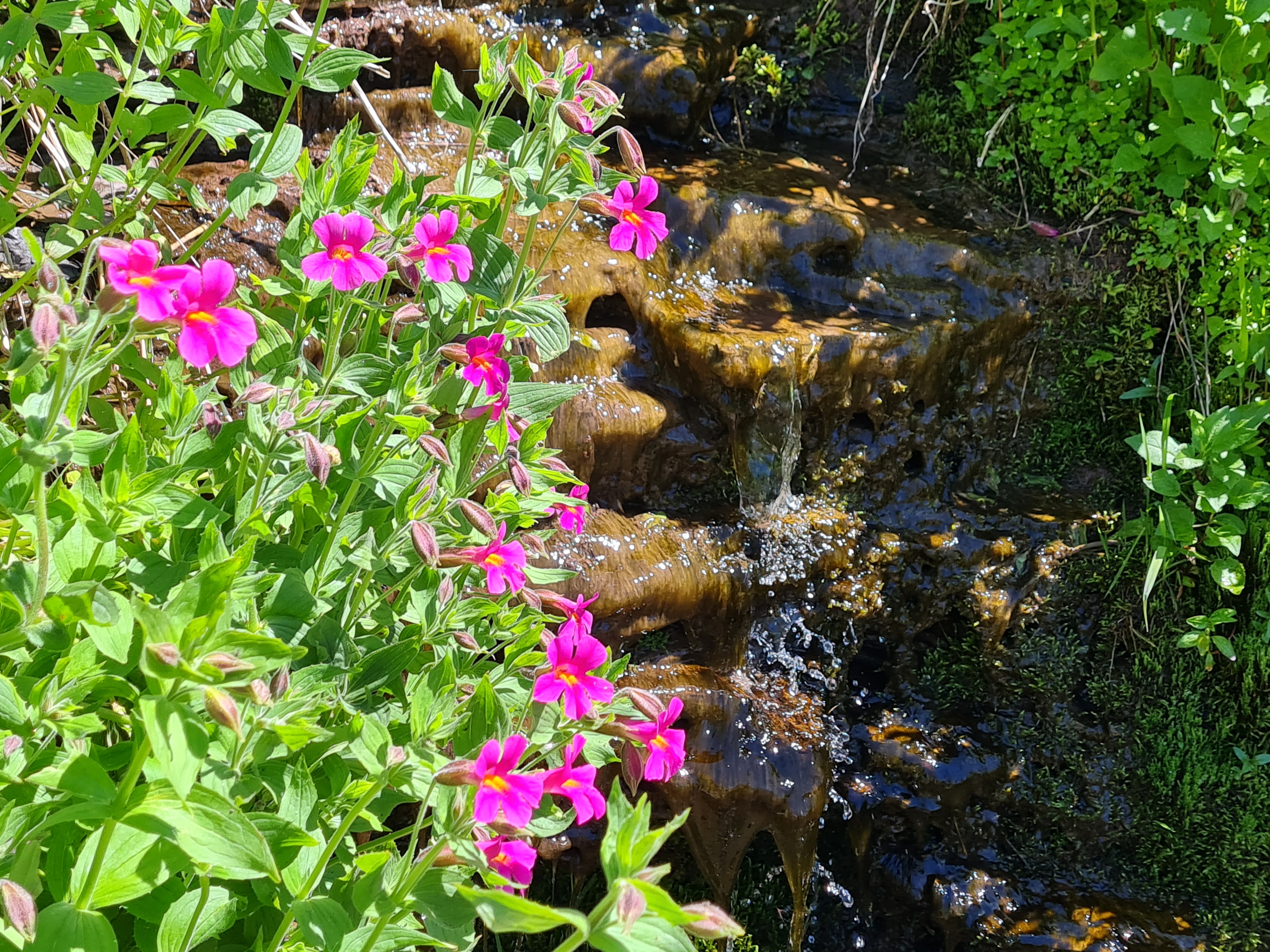 Sky Pilot / Skunkweed on Carthew ridge. Cameron Lake and trailhead below.