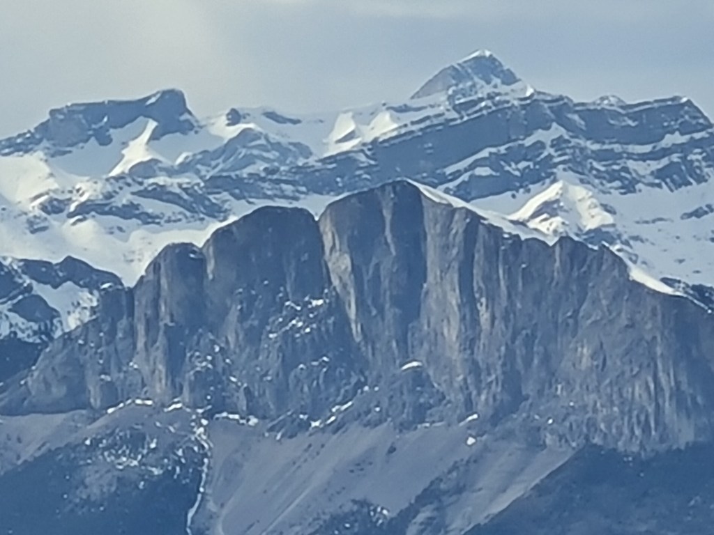 Still lots of snow on front ranges in late April- Yamnuska with Od Fort and Morrowmount behind.