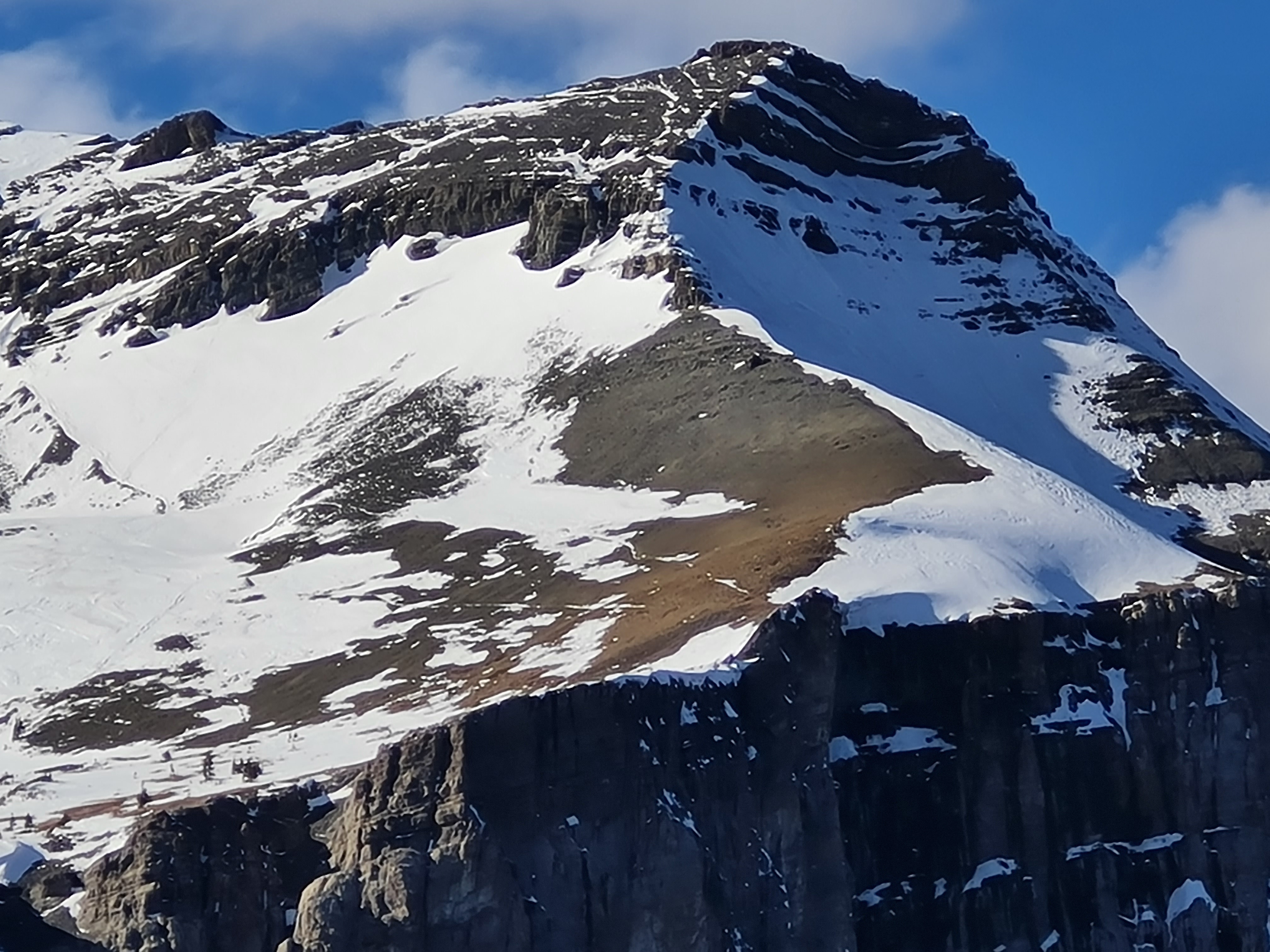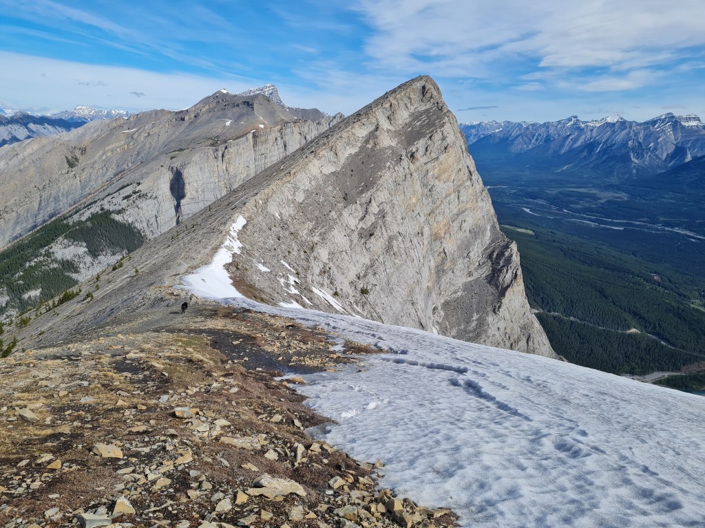 View from Ha Ling toward East End of Rundle, showing much of the upper scramble route.
