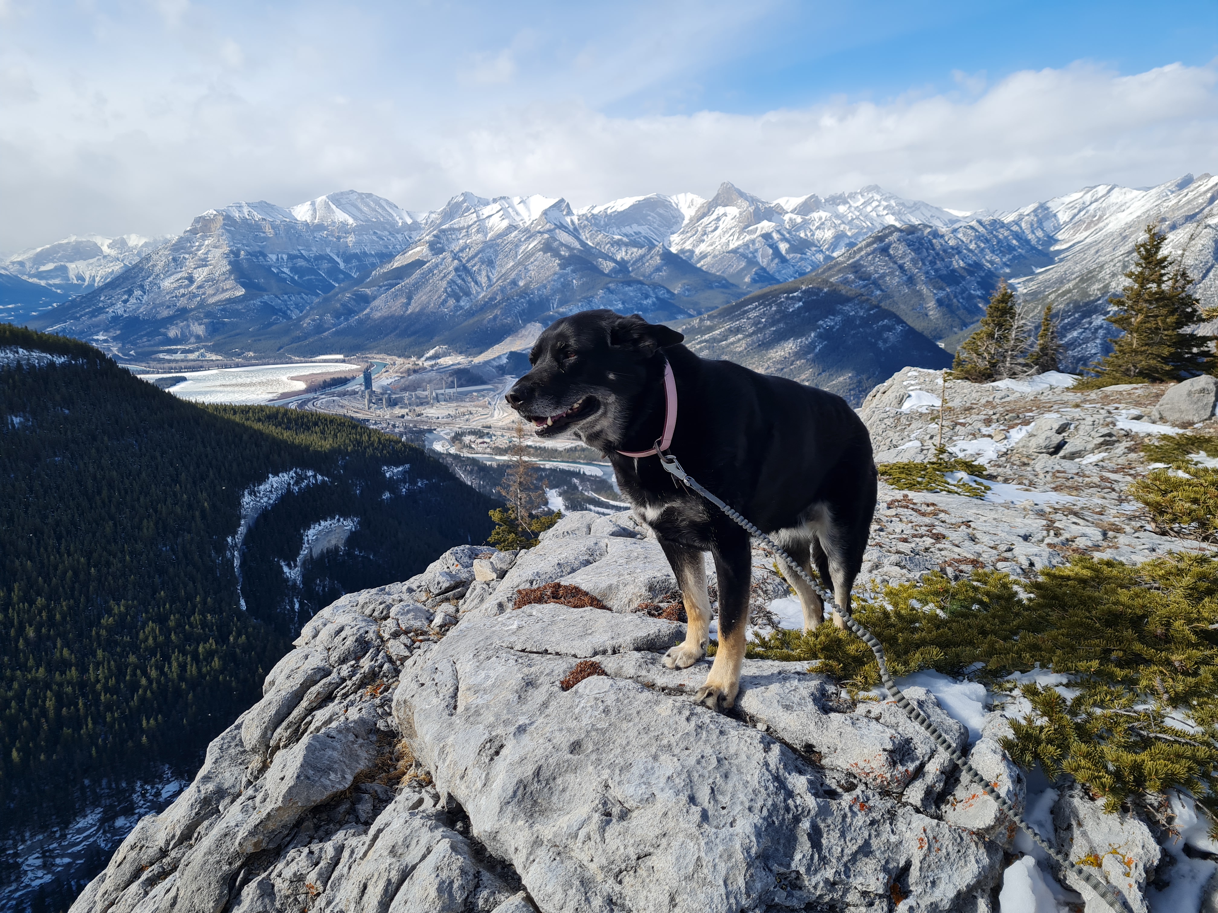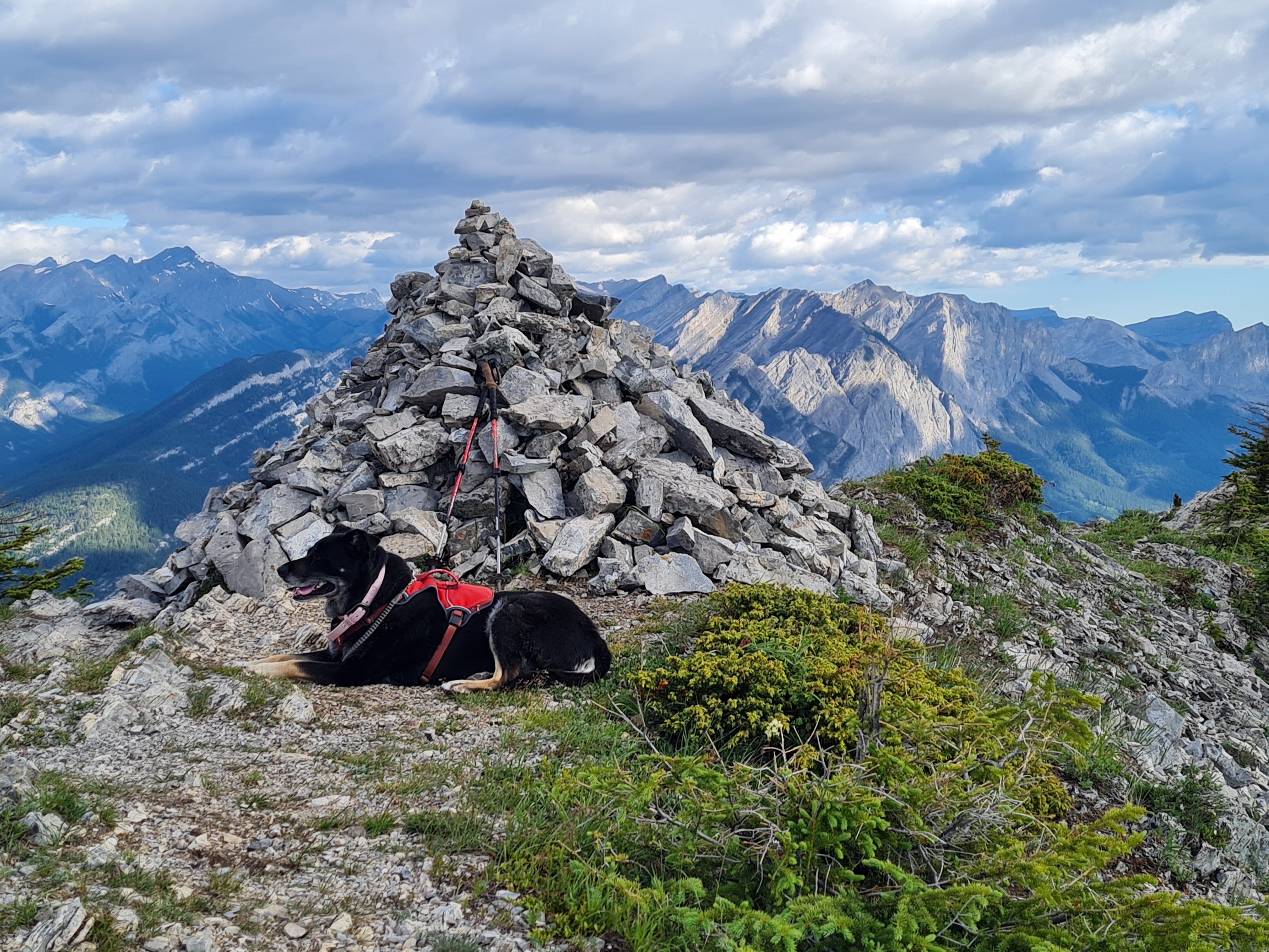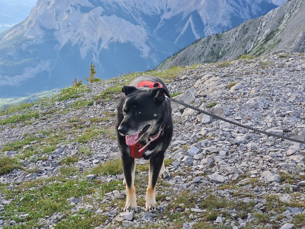 Kona on Grant MacEwan peak via the east ridge (normal descent route for the Heart Mountain loop) at 8:30am in early July to beat the heat and afternoon thunderstorms.