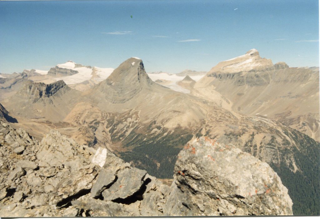 View of Mount Niles from Mount Ogden Oct 2, 1993. Mount Daly at right, Mount Balfour at left.