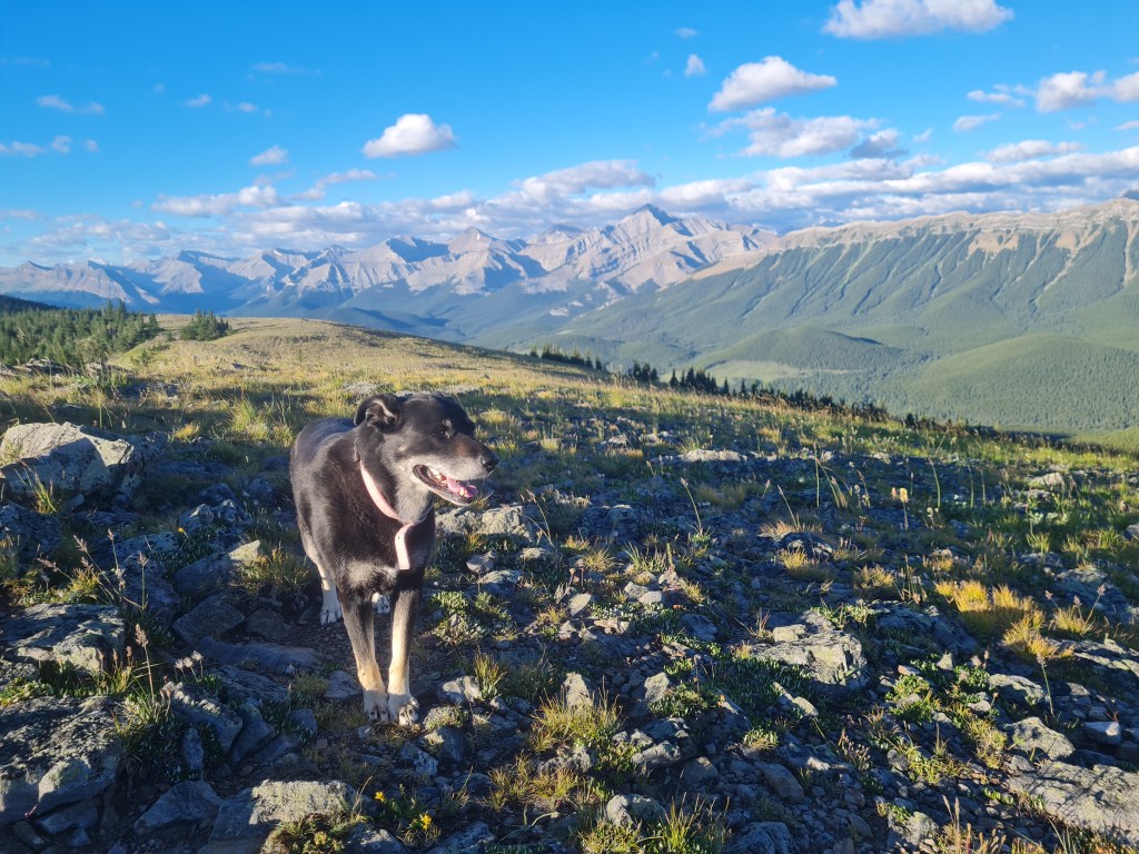 Kona on Powderface Ridge hike in early November. Moose Mtn and Prairie Mtn behind.