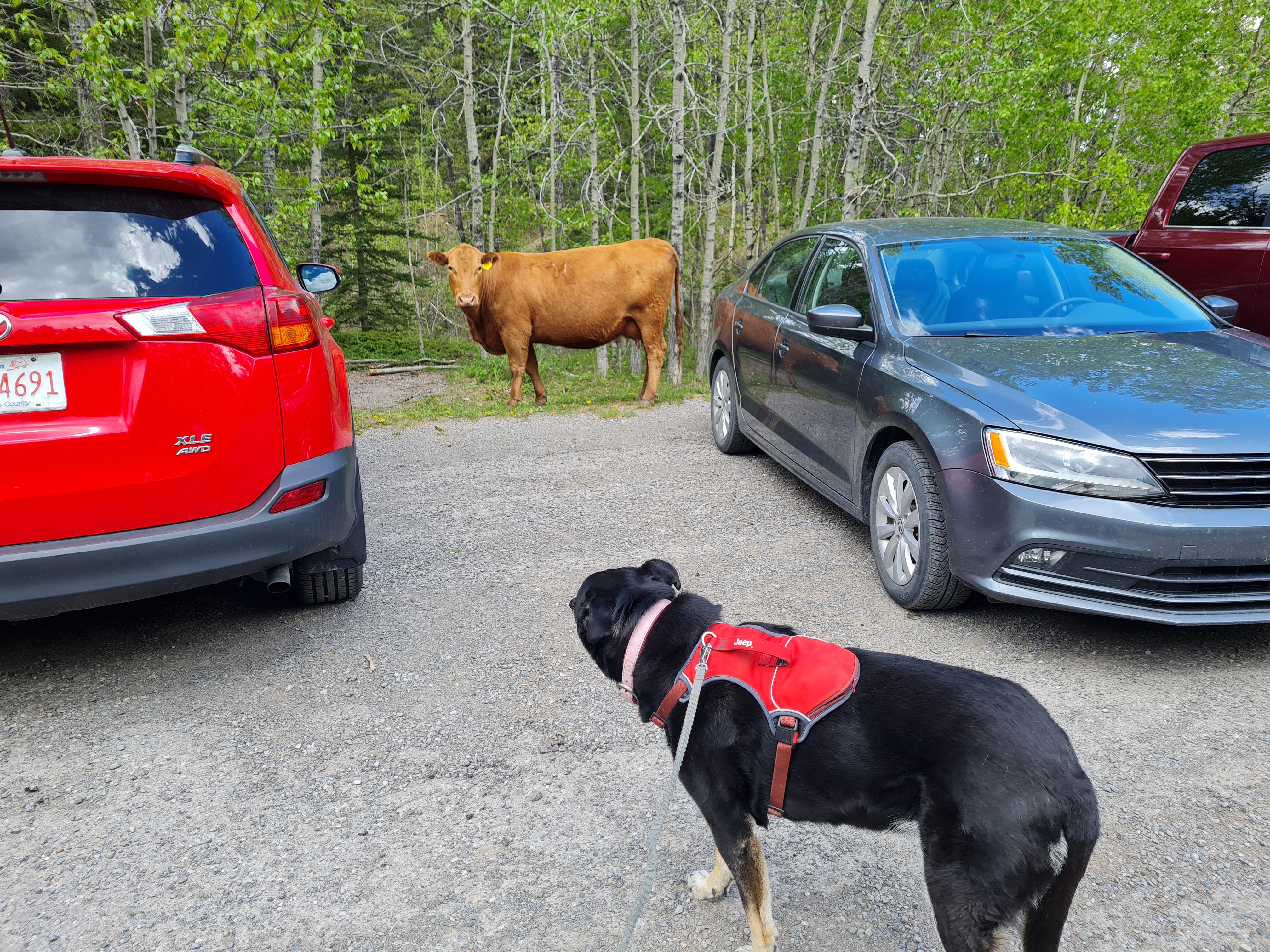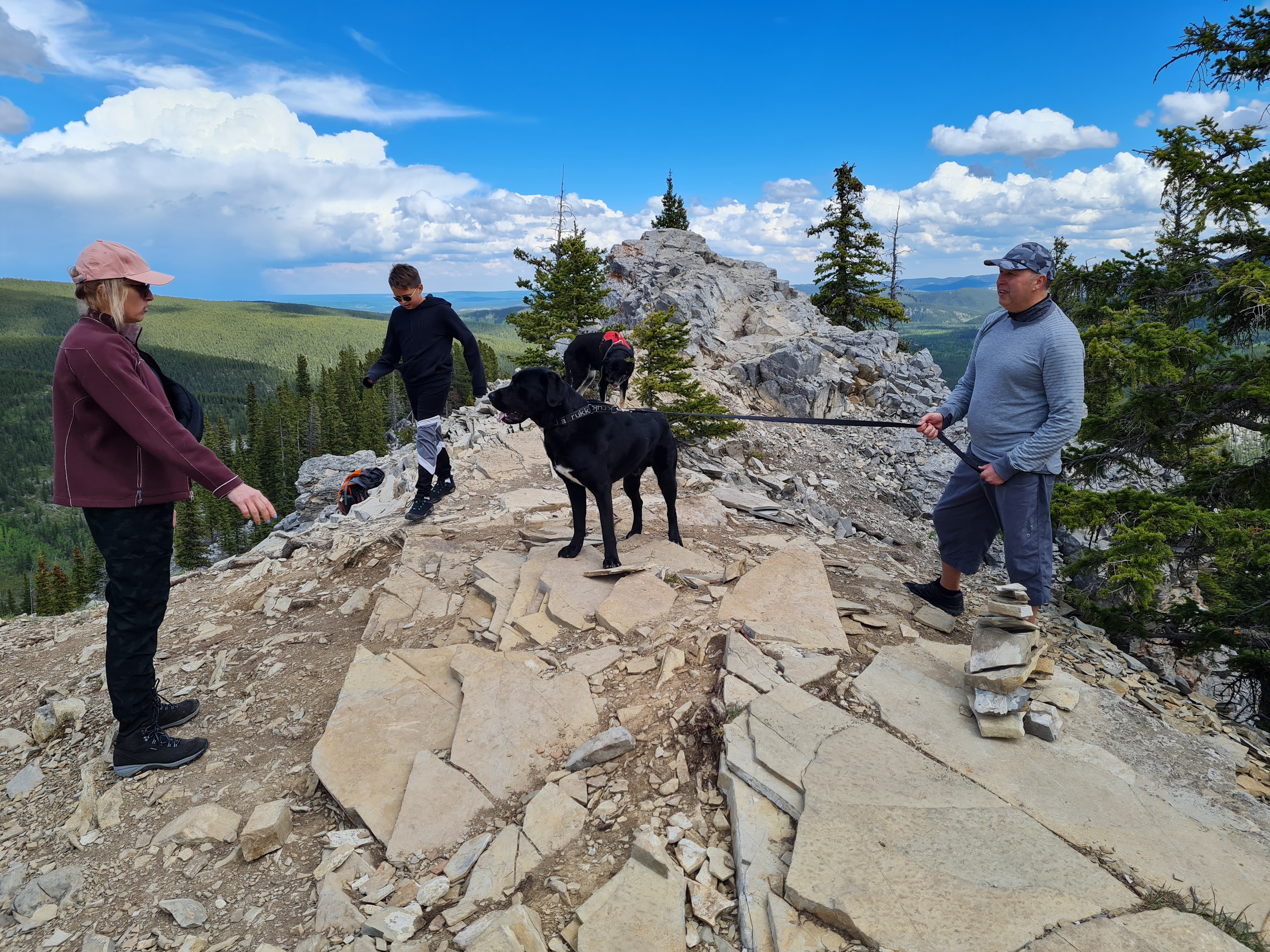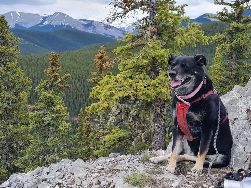 White Buddha (300 m elev. gain) Dolce – White Buddha Dolce on White Buddha in mid-June. Prairie Creek Parking Visitor at Prairie Creek parking lot. Kona – White Buddha Kona on White Buddha in late May with Forgetmenot Ridge behind up the Elbow River valley. Aster – White Buddha Aster (8 years) and friends just below summit ridge.