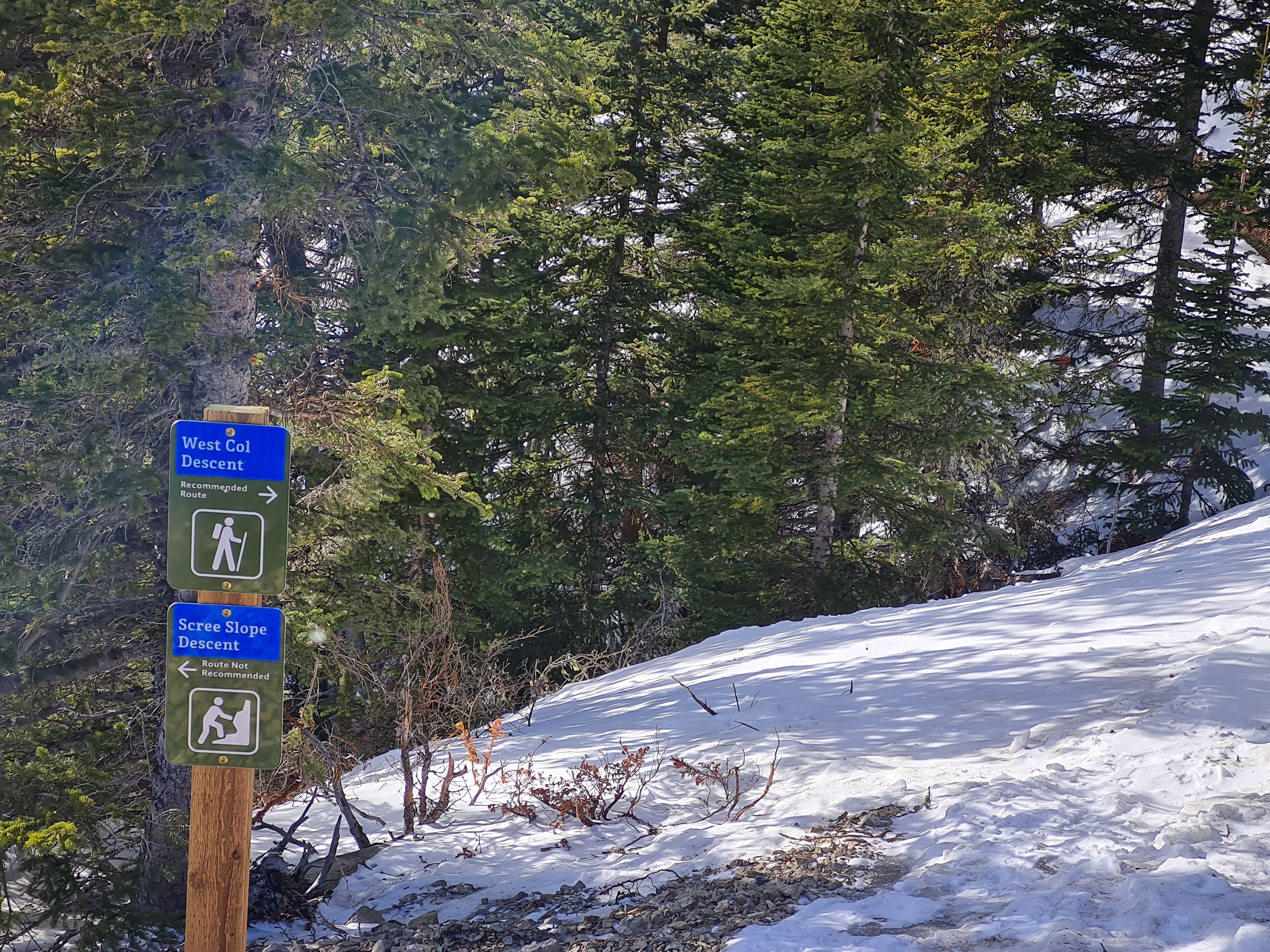 Unable to locate trail shortly after this point due to fresh windblown snow, so headed up a bare scree slope to regain old trail.