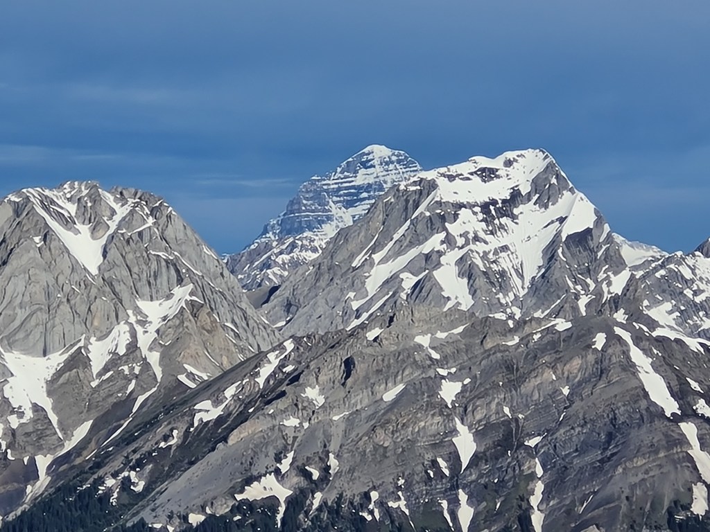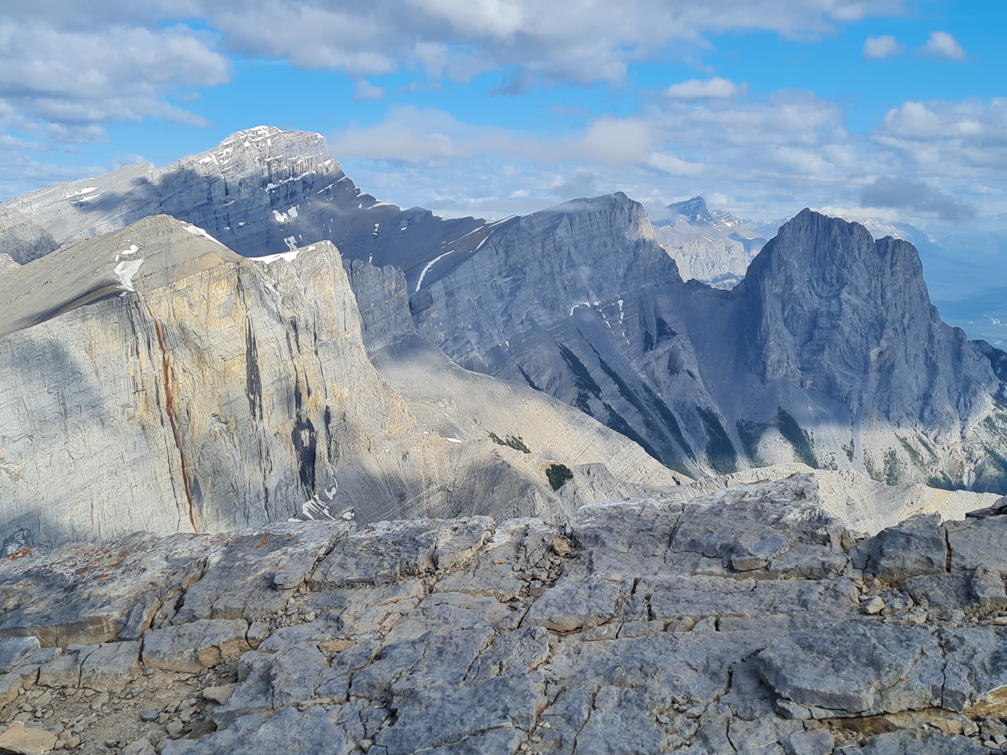 Mt. Assiniboine (and Lunette) visible behind Mt. Smuts to the NW.