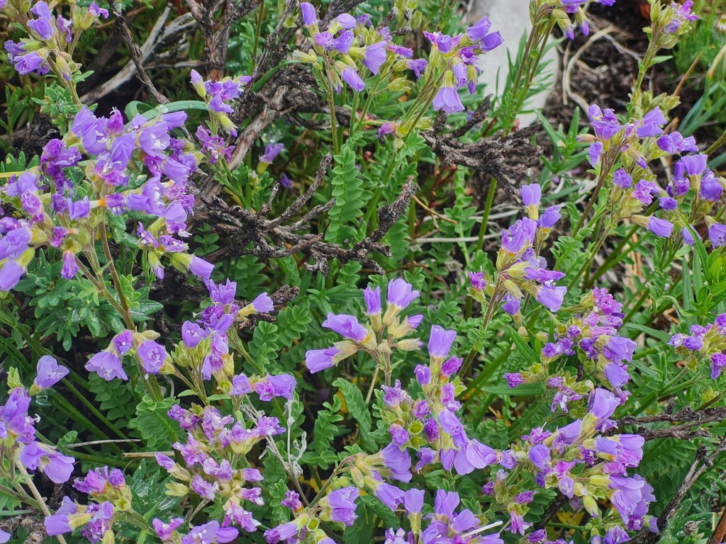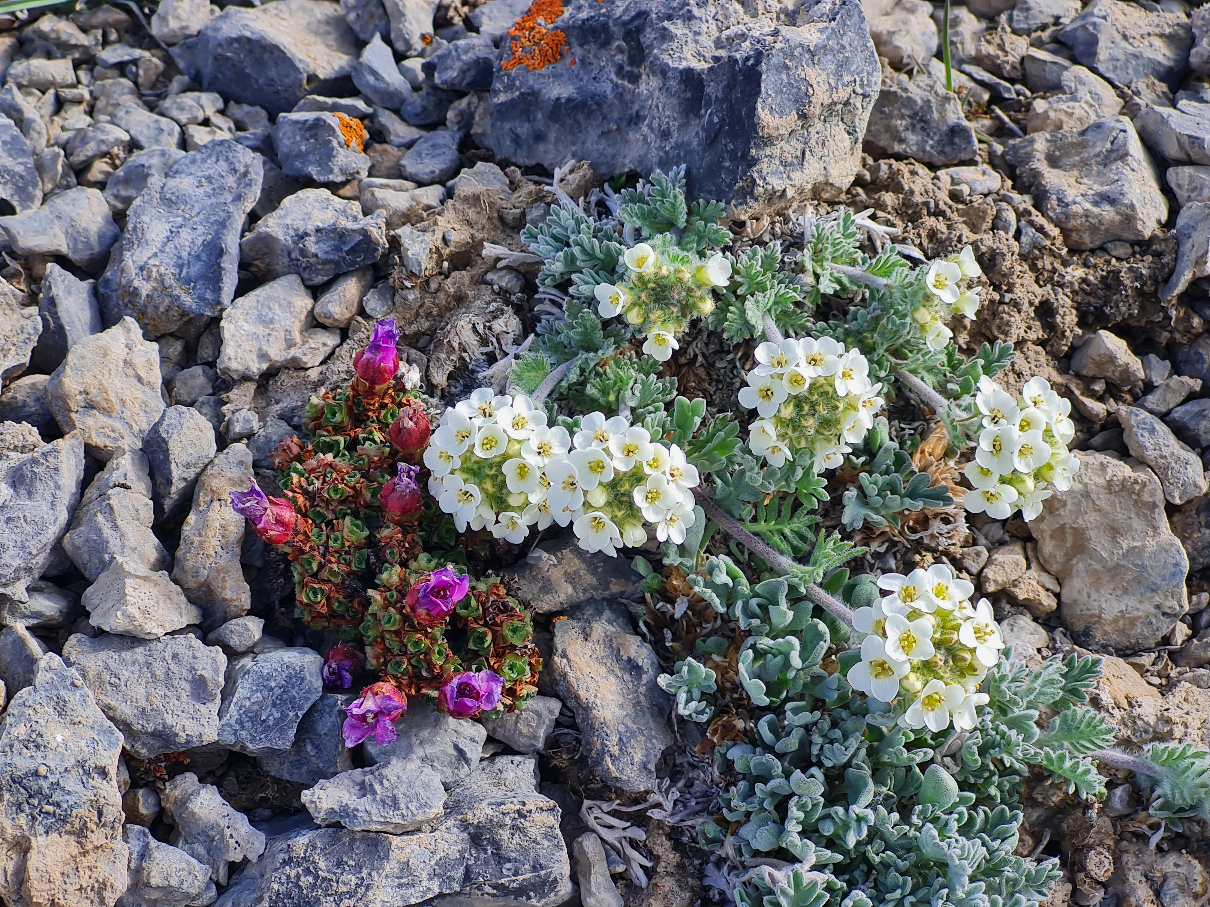 Purple Saxifrage (Saxifraga oppositifolia) on upper slopes.