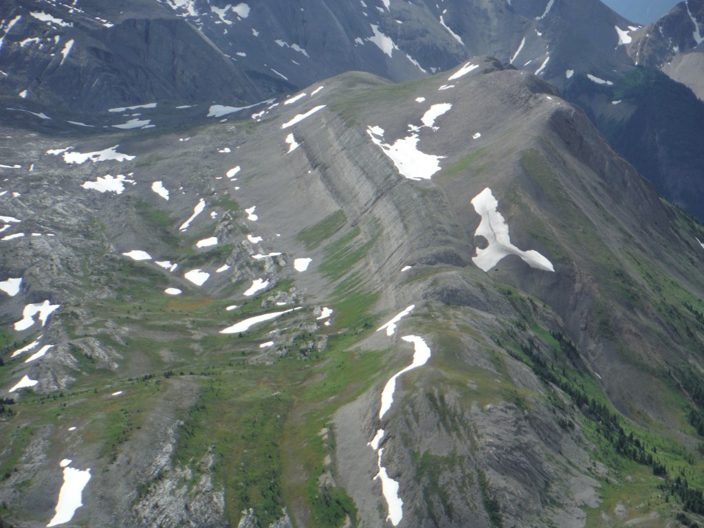 Heading up the lower slopes of Highwood Ridge – Grizzly Ridge at right with Mount Tyrwhitt behind. Photo by Anh.