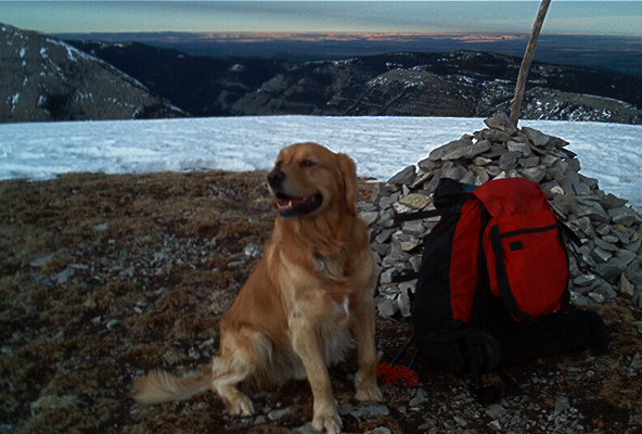 Buddy (3 yrs) with “Brother” Jason on Prairie Mountain in December.
