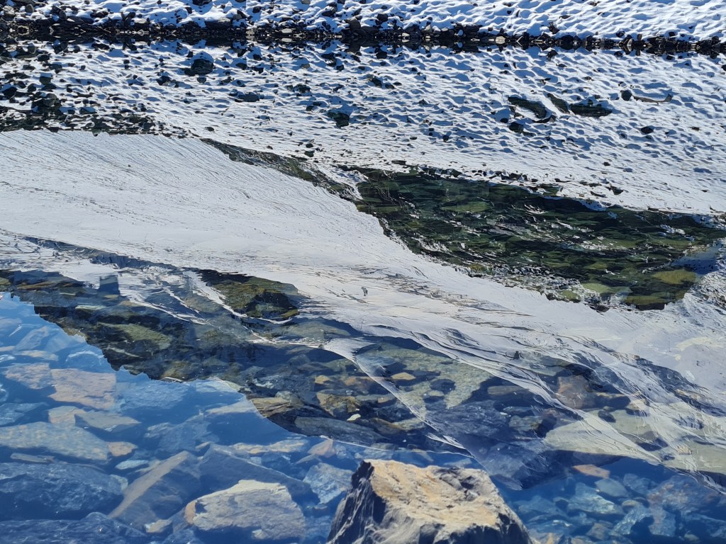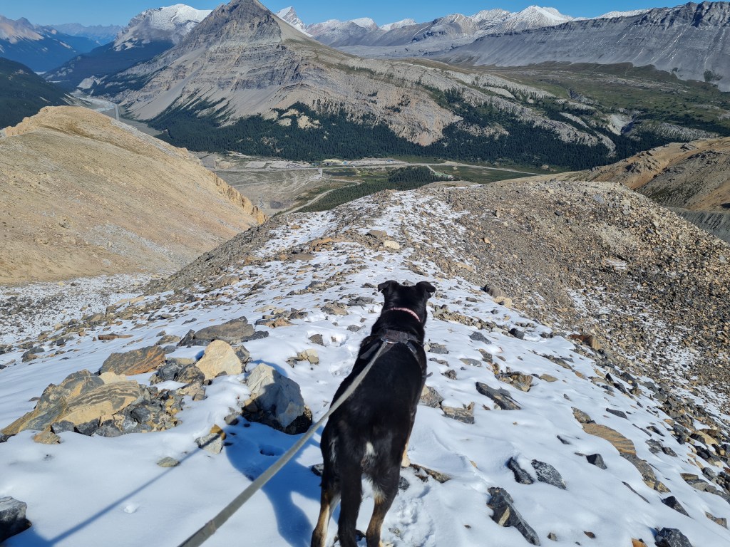 Kona getting the standard MacD’s apple pie treat on the top. View of Louise ski slopes with Unity / Pumpkin / Lipalian traverse in distance.