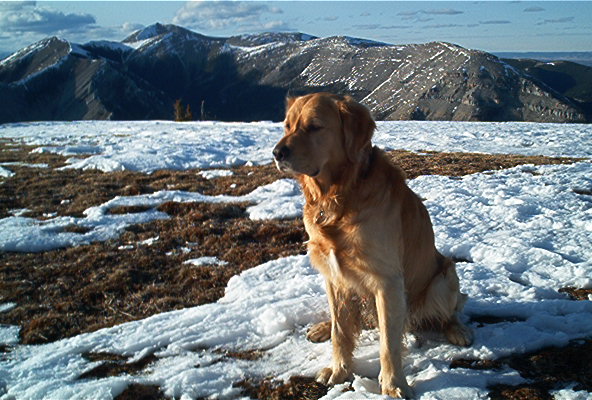 Buddy on Prairie Mountain April 2003 – Moose Mountain behind